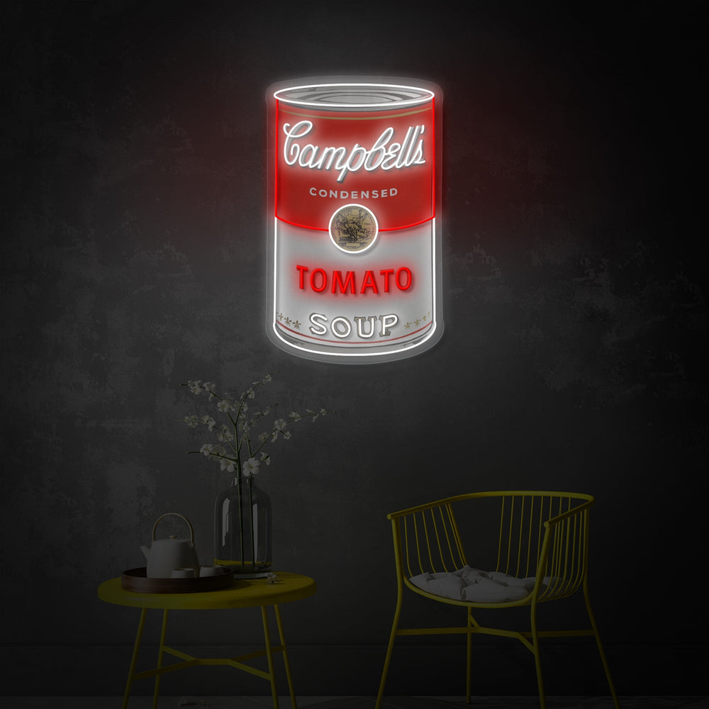 "Sopa de tomate puede, arte pop" Letrero de neón LED impreso con UV