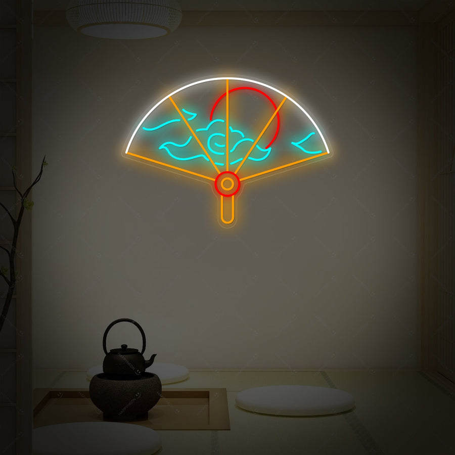 Abanico japonés Letrero de neón, letrero de neón japonés