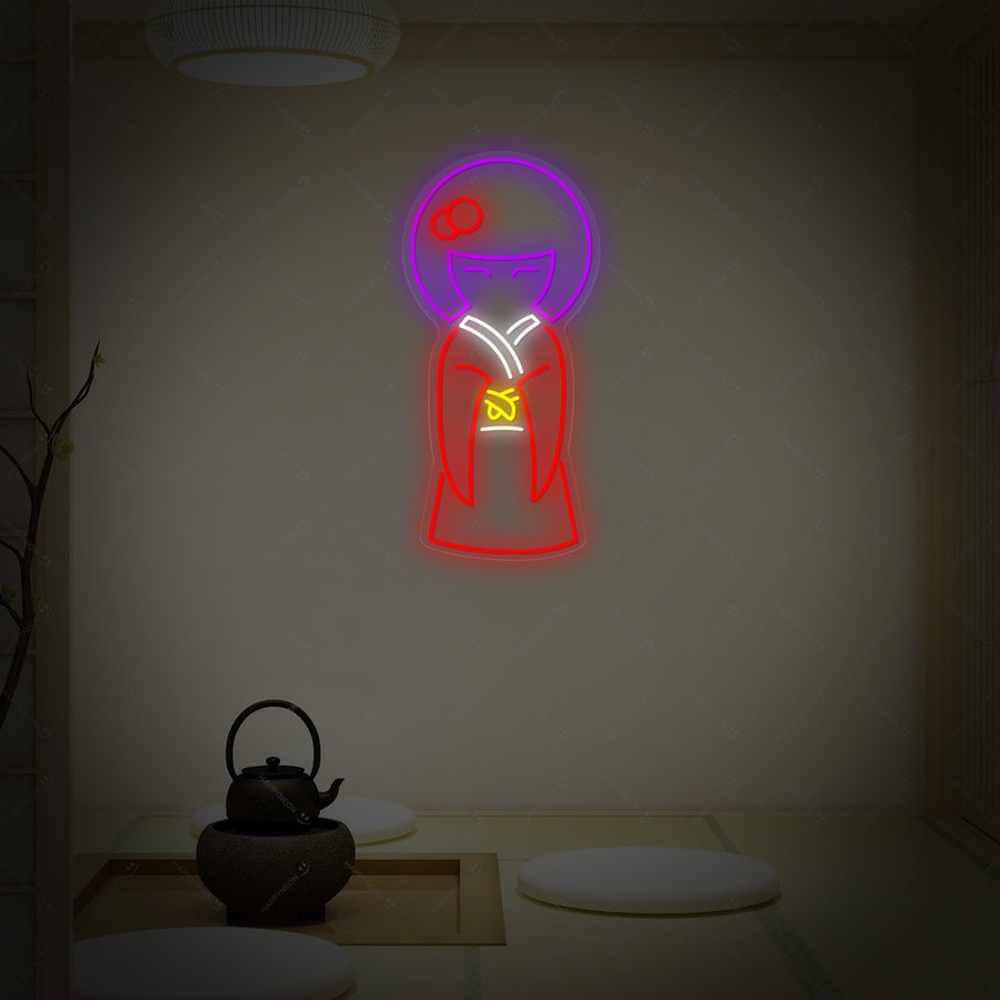 Geisha en Kimono Letrero de neón, letrero de neón japonés