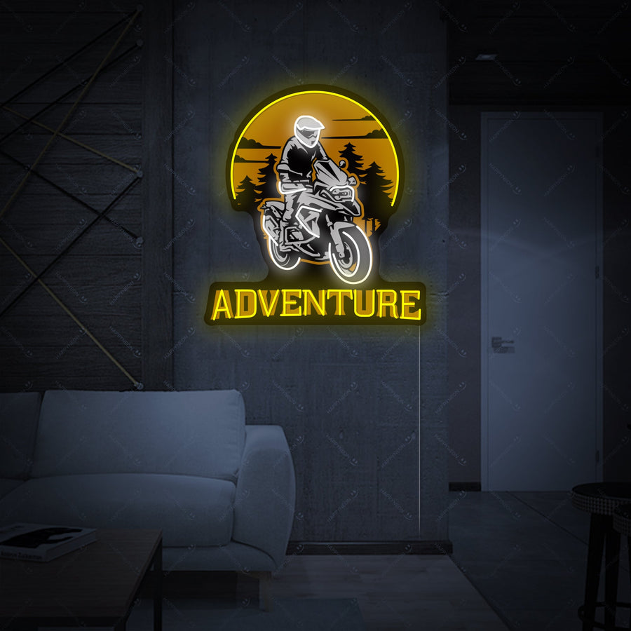 "Motociclista Montando Aventura En Moto" Letrero de neón